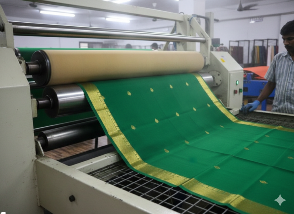 We use professional-grade machines designed specifically for saree washing and polishing.